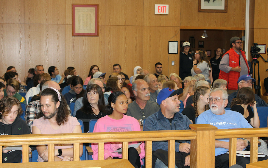 A standing-room-only crowd in Town Hall on Monday signaled its approval to the town's efforts to limit the size of new buildings on Grand Island to 100,000 square feet.