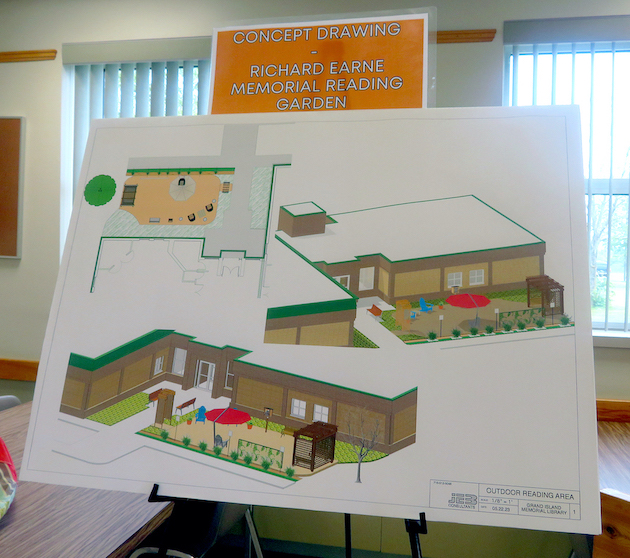 The Grand Island Memorial Library is planning to add a reading garden to the grassy area next to the building that faces the parking lot. The library will be called the Richard Earne Memorial Reading Garden, as a tribute to the late Richard Earne, who was a member of the Grand Island Rotary Club, as well as a member of the library board of trustees. He died on Sept. 18, 2022.