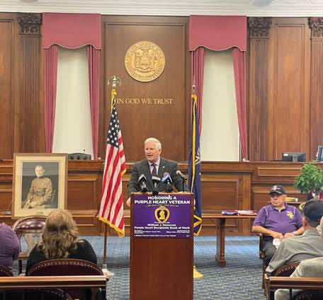 In honor of Purple Heart Appreciation Day (Monday, Aug. 7), Erie County Clerk Michael P. Kearns recognized 22 Erie County Purple Heart recipients who were added to the William J. Donovan Purple Heart Book of Merit for 2023.