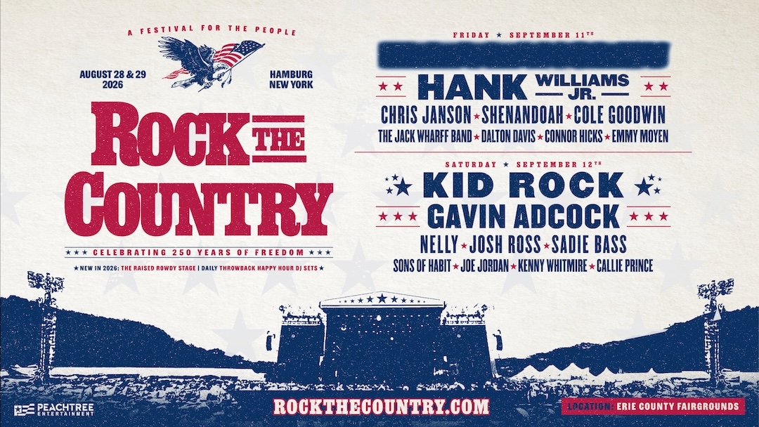 Peachtree Entertainment announced plans for the mighty "Rock the Country, A Festival For The People," in Hamburg. The two-day event will take place Sept. 11-12 at the Erie County Fairgrounds, celebrating America's 250th year and marking a powerful celebration of America's anniversary through music, community and patriotism.