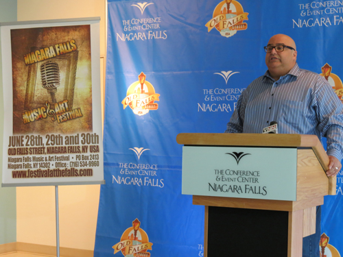 Niagara Falls Music & Art Festival President Rick A. Crogan, volunteer Becky Marchetti and Niagara Falls Mayor Paul Dyster spoke Thursday at a press conference announcing details for the third annual summer event, scheduled to take place this year from June 28-30.