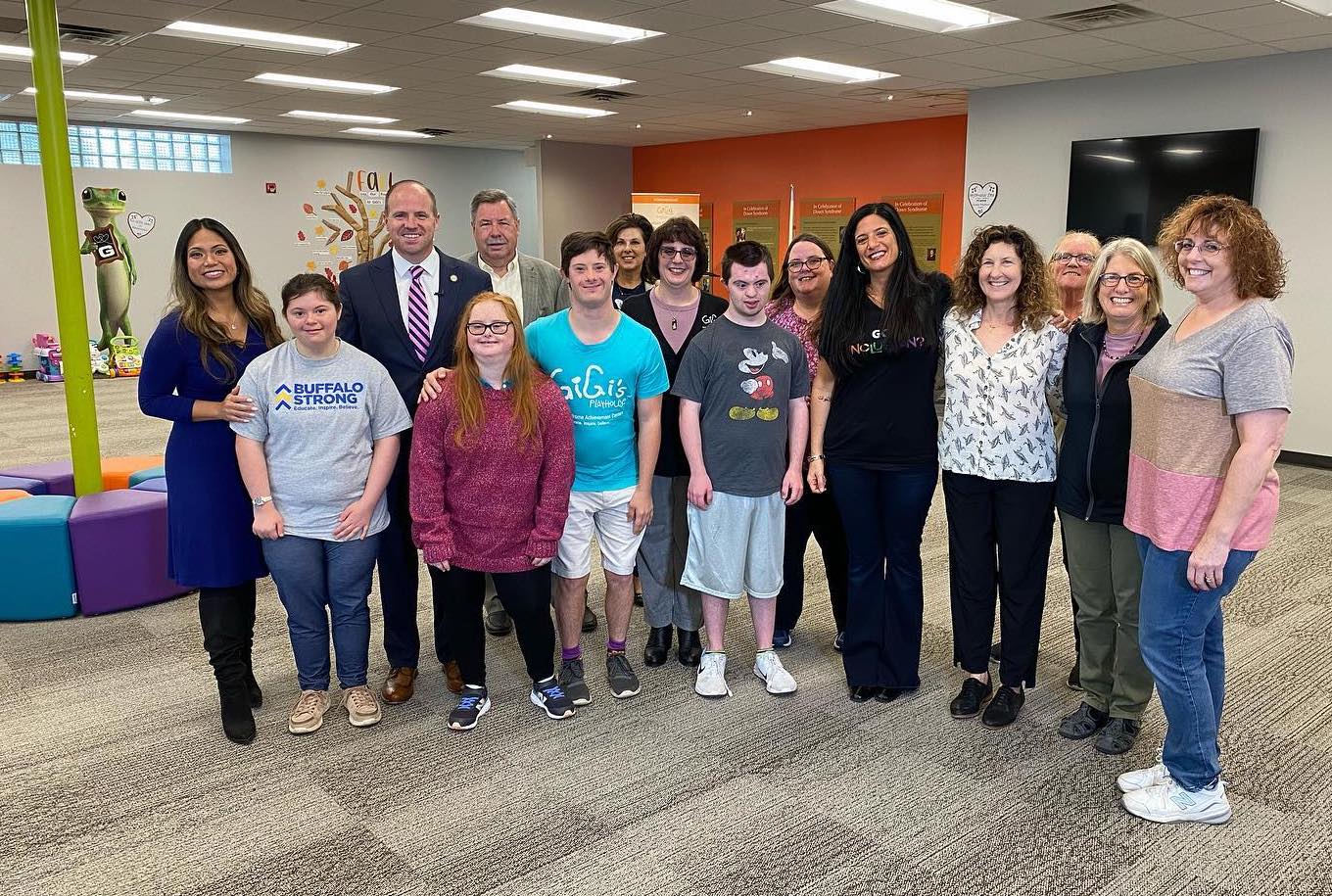 New York State Sen. Tim Kennedy joined GiGi's Playhouse Buffalo Executive Director Emily Mondschein on Thursday to celebrate the beginning of Down Syndrome Awareness Month by delivering $100,000 in state funding for the center.