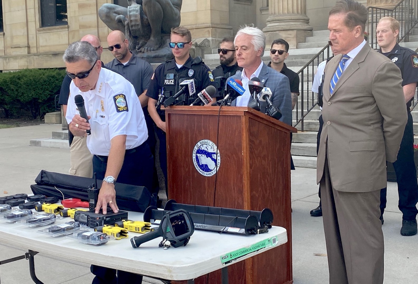 Congressman Brian Higgins and City of Niagara Falls Mayor Robert Restaino announced several public safety investments made possible thanks to the more than $57 million in federal funding received by the city through the American Rescue Plan. Niagara Falls has plans to invest over $11.4 million of its American Rescue Plan funding in public safety, including new and improved police and fire equipment.