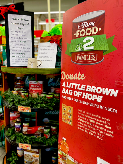 Tops Friendly Markets will once again host its annual "Food 2 Families," now in its 17th year, with a goal to provide more than 2.5 million meals for neighbors in need. The campaign runs from Nov. 14 through Dec. 24 in-store and online.