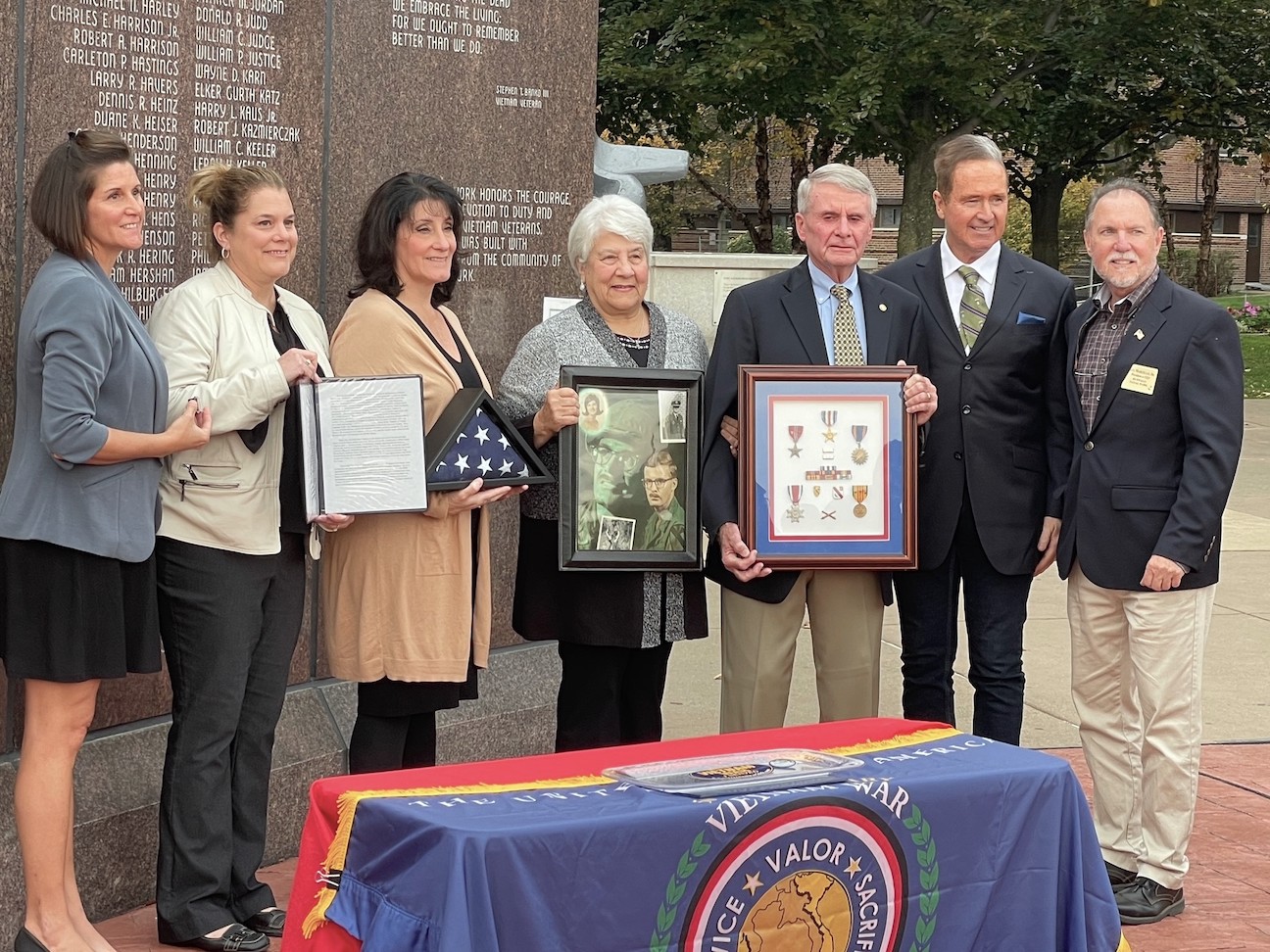 Congressman Brian Higgins recently honored Vietnam veteran Capt. Jack Walter in a ceremony at the Buffalo and Erie County Naval & Military Park for his distinguished service in U.S. Army. He presented Walter with a Vietnam veteran lapel pin ahead of Veterans Day.
