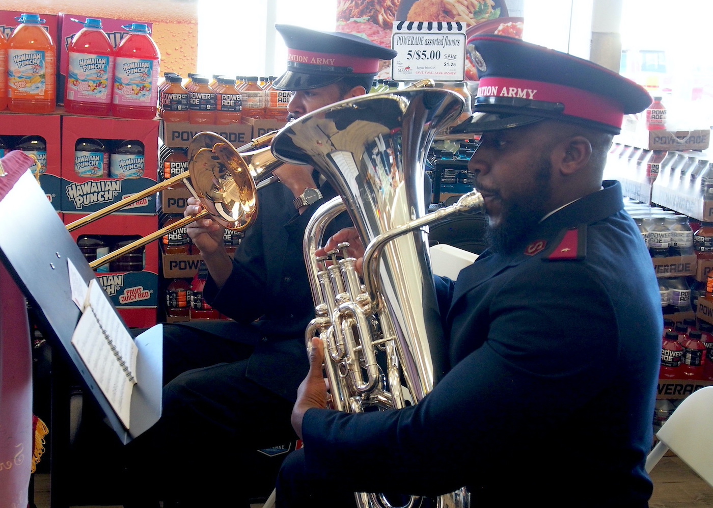 The 2021 Salvation Army Bellringer Drive recently kicked off at the Market in the Square in North Tonawanda with speeches, the introduction of the new lieutenants for the Tonawanda district, and with a performance of Christmas carols by the Salvation Army's four-piece brass band.