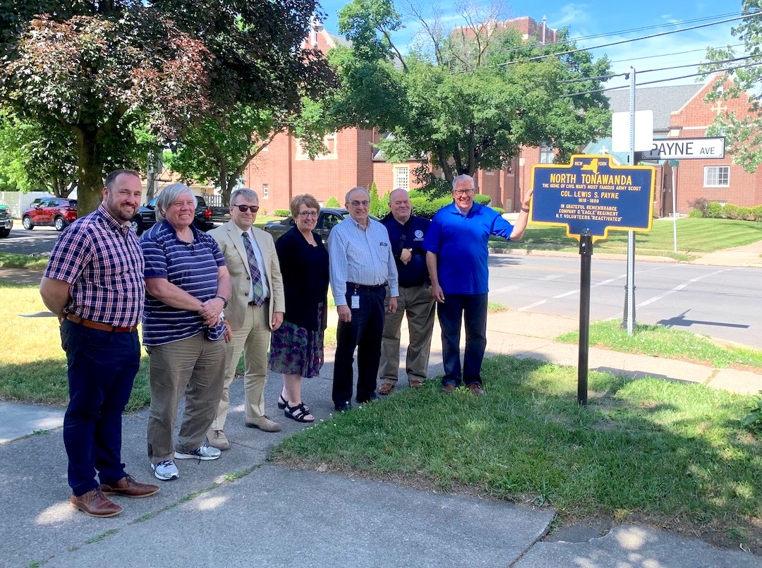 Completing a project that saw the Historic District of North Tonawanda receive new street signs, elected representatives from city government along with County Legislator Rich Andres gathered to rededicate the Col. Payne Historic plaque in front of his historic residence located on Payne Avenue and Wheatfield Street on Wednesday.