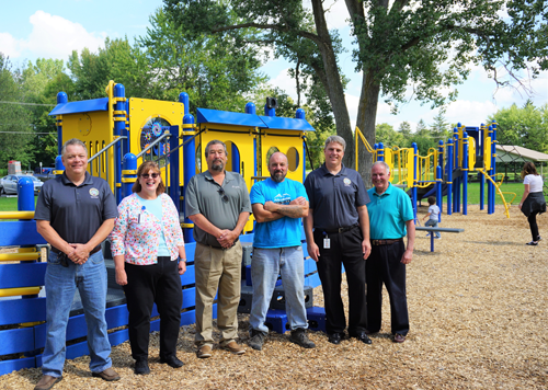 Niagara County Legislator Anthony Nemi recently joined Pendleton officials at West Canal Park to announce the completion of a new playground. The site includes modern play equipment and, fittingly, incorporates a blue and yellow boat theme as the play area sits beside the Erie Canal.