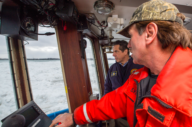 Gov. Andrew Cuomo on Monday toured the ice boom and ice-breaking operations on the Niagara River following the significant windstorm that impacted Western New York from Sunday into Monday. The tour was conducted on the New York Power Authority's William H. Latham ice breaker, which is used to prevent ice jams on the river and also to prevent ice from blocking the tunnel water intakes that are used by NYPA's power plant for power generation.