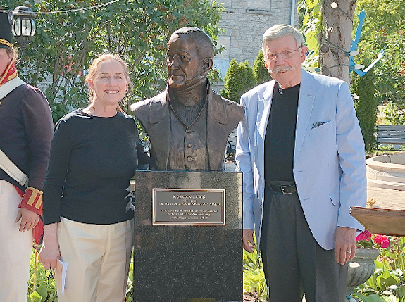 The man for whom Lewiston was named received his own monument on Thursday, as the Village of Lewiston officially unwrapped the Morgan Lewis bust inside the International Peace Garden. Acclaimed sculptor Susan Geissler created the artwork - her third monument in Lewiston, joining the Tuscarora Heroes (Center Street) and Freedom Crossing (Water Street).