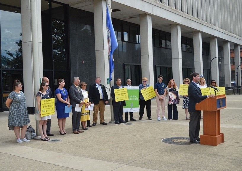Erie County Executive Mark C. Poloncarz was joined Tuesdays by Commissioner of Health Dr. Gale Burstein and Commissioner of Mental Health Michael Ranney, CEO of Crisis Services Jessica Pirro, Celia Spacone of the Suicide Prevention Coalition, and concerned citizens in front of the Edward A. Rath county office building to spread a message of hope and proclaim "Suicide Prevention Week" in Erie County.