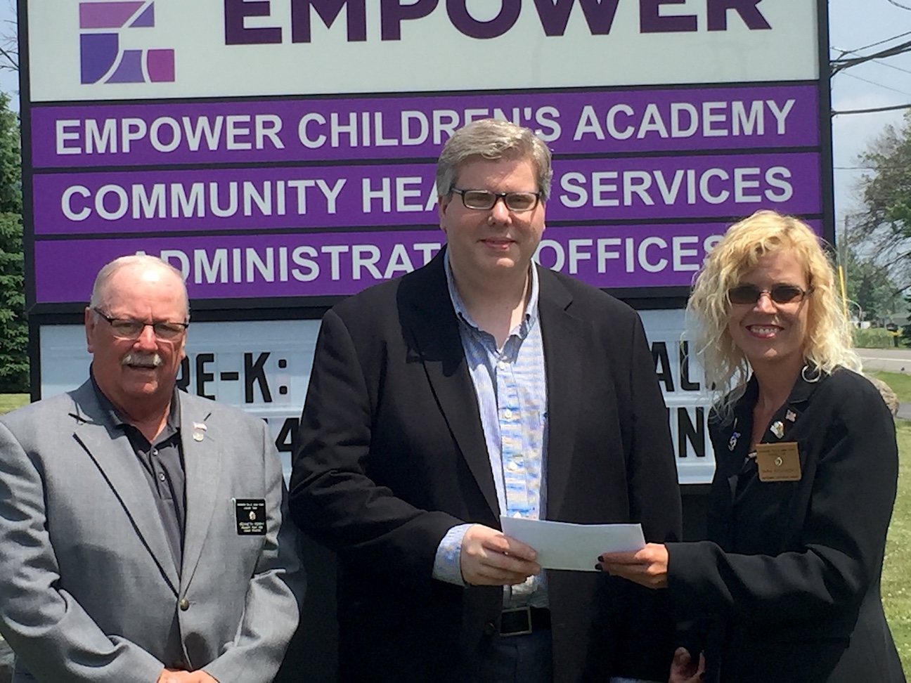 From left: Elks Lodge No. 346 Exalted Leader Ken Perry presented a check for $2,000 to Empower CEO Jeff Paterson and Elks Lodge member and Empower employee Tara Stufkosky. The money will enable people with intellectual or developmental disabilities who are supported by Empower to go on five additional outings throughout the summer, including a Buffalo Bisons game, two visits to a farm, Fantasy Island and the Lockport Caves.