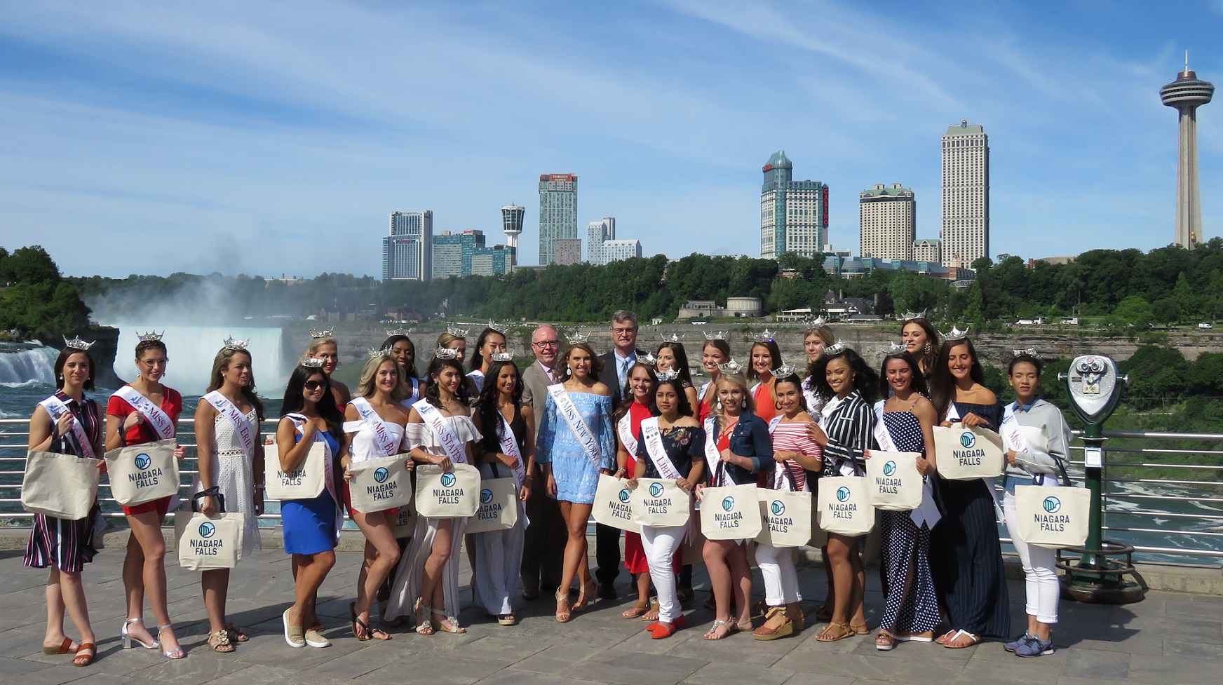 Tuesday morning the 24 contestants for Miss New York visited Niagara Falls for a photo and brief remarks from current Miss New York Gabrielle Walter, Niagara Falls Mayor Paul Dyster and President and CEO of Destination Niagara USA John Percy.