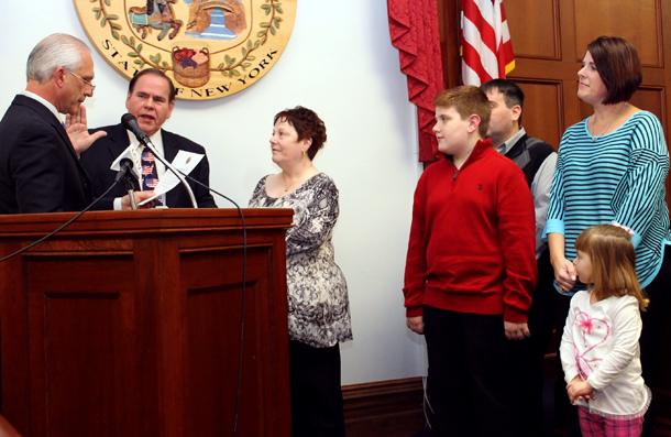 Niagara County Legislature Chairman Wm. Keith McNall, R-Lockport, took his oath of office Tuesday night surrounded by family in a ceremony at the Niagara County Courthouse, moments after being formally elected to the post by colleagues.