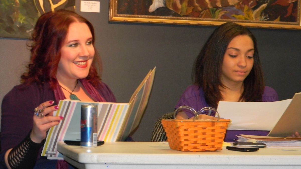 Pictured, event organizers, artist/designer Mary Grace Ohrum (left) of the Niagara Arts and Cultural Center, and Celina M. Robinson of the Monarchs Dance Co. of Buffalo oversee a casting call of models Sunday at the Tri-Main Center in Buffalo.