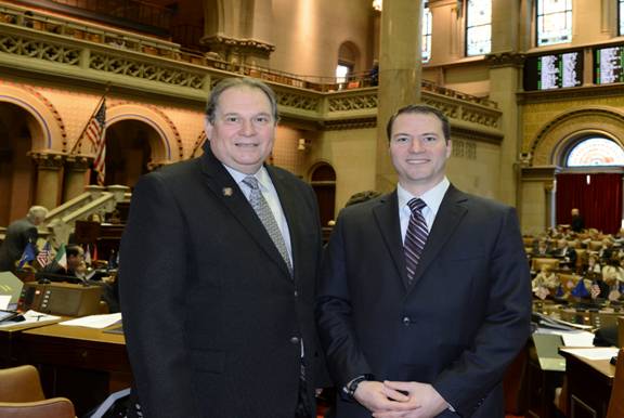 Assemblyman John Ceretto along with Assembly Minority Leader Brian Kolb welcomed Jason Cutler and Sarah Jensen, students at Niagara University, to the Assembly chambers on the opening day of the 2014 legislative session.