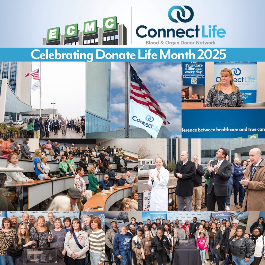ECMC's Regional Center of Excellence for Transplantation & Kidney Care is a state-of-the-art facility dedicated to comprehensive patient care. ConnectLife is Western New York's only organ, eye, tissue and community blood center.