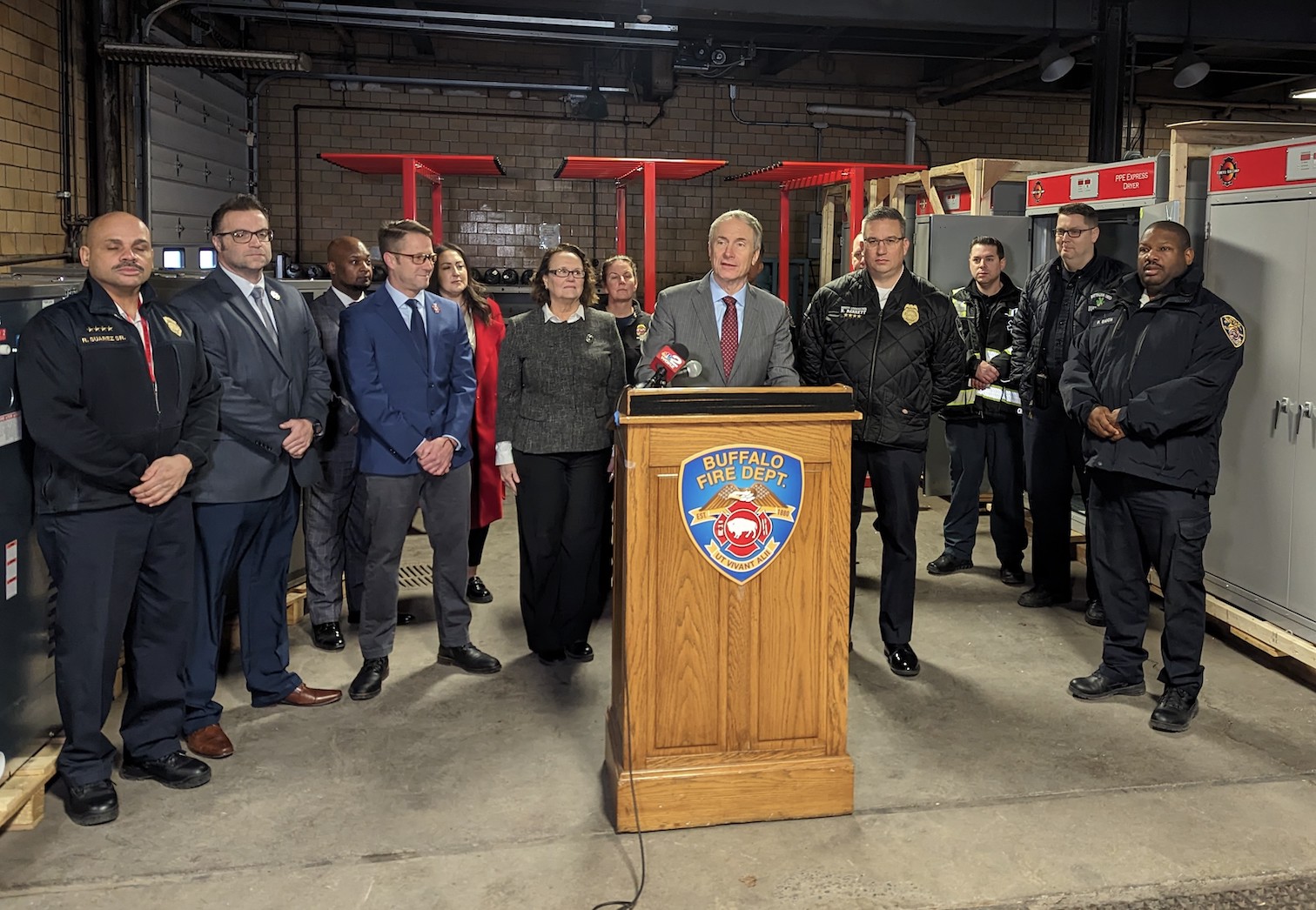 New York State Sen. Sean Ryan was joined Friday by representatives from the Buffalo Fire Department, Buffalo Professional Firefighters Local 282, and Roswell Park Comprehensive Cancer Center to announce $190,000 in state grants to pay for equipment the senator's team said will help protect Buffalo firefighters from increased cancer risks by removing cancer-causing contaminants from their protective gear.