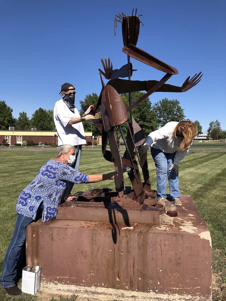 The Lewiston Council on the Arts was busy Friday afternoon touching up "Tango," the sculpture that dances in front of the Lewiston Senior Center on River Road. Volunteers painted a metal preservative on the artwork.