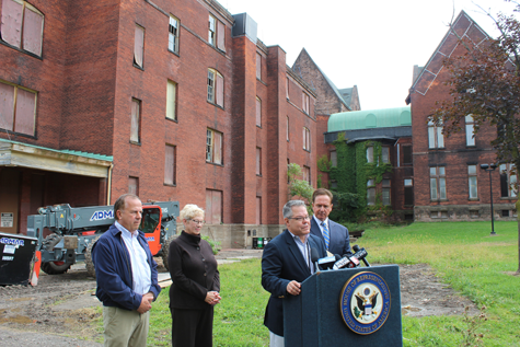 Congressman Brian Higgins joined staff and board members of the Richardson Olmsted Campus to celebrate the award of a $400,000 "Save America's Treasures" grant. The federal funding will be used on roofing to stabilize and preserve the integrity of four buildings on the campus.