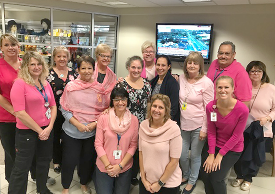 Associates and volunteers of Mount St. Mary's Hospital celebrated "Go Pink for Breast Cancer Awareness Day" on Friday. Staff throughout the hospital wore pink to enhance awareness while information displays were provided in public areas.