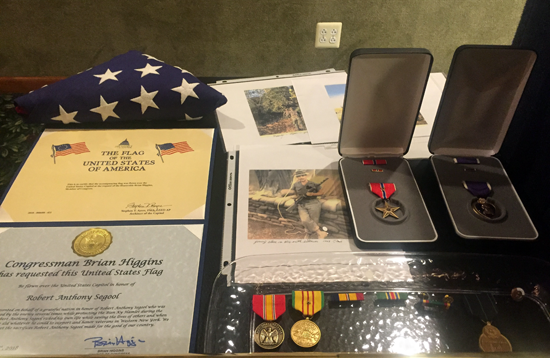 During a gathering of Western New York Military Order of the Purple Heart members, Congressman Brian Higgins honored wounded veterans who served during the Vietnam War, including a special presentation of a Bronze Star and other medals to Chapter 187 Chaplain Robert Segool.