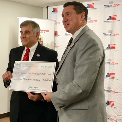 Erie County District Attorney John J. Flynn presented a check for $5,000 to the Veterans One-stop Center of WNY to help fund its programs.