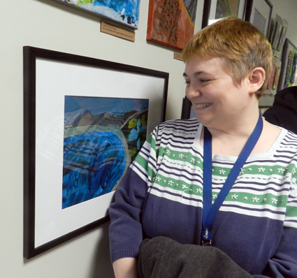 A group of artists from Opportunities Unlimited of Niagara gathered at Mount St. Mary's Hospital on Thursday for a ceremony to bless their artwork, which is on exhibit at the hospital.
