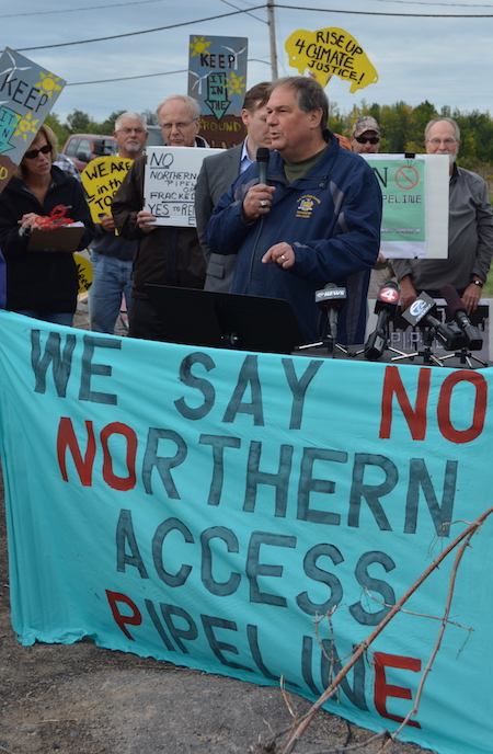 Residents of Wheatfield and surrounding communities rallied Friday afternoon in opposition to National Fuel's Northern Access 2016 pipeline project. With signs in hand, protesters gathered on Liberty Drive where National Fuel has proposed a natural gas dehydration facility to be constructed as part of the general project.