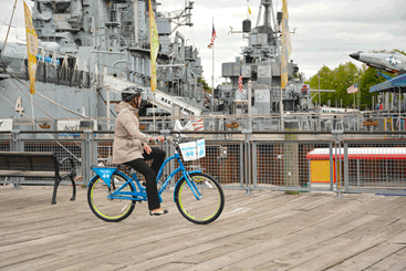 Erie Canal Harbor Development Corp. cut the ribbon Monday on the Queen City Bike Ferry to Buffalo's Outer Harbor. The brand-new multihull ferry will carry pedestrians and their bikes across the Buffalo River from Canalside to the First Buffalo Marina, where they can disembark and enjoy touring Outer Harbor sites and beyond.