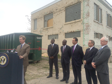 Congressman Brian Higgins and City of Buffalo Mayor Byron Brown joined the Federal Home Loan Bank of New York in announcing the award of a $300,000 grant to Belmont Housing Resources for Western New York to help finance the Bellamy Commons project, which involves the conversion of a vacant former community center into 30 affordable housing units.