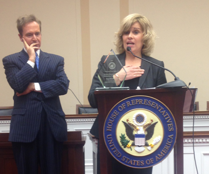 Erie County Family Justice Center Executive Director Mary Travers Murphy was presented a national award from the U.S. Congressional Victims' Rights Caucus. Congressman Brian Higgins nominated Murphy for the "Ed Stout Memorial Award for Outstanding Victim Advocacy" and introduced her at today's ceremony on Capitol Hill.