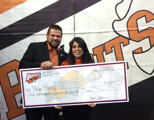 Paige Printup, a Niagara University senior studying criminology and criminal justice, was chosen as the recipient of the 2015 Native American Scholarship from the Buffalo Bandits.