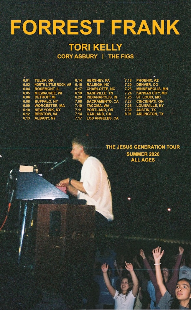 Grammy-nominated and GMA Dove award-winning artist Forrest Frank has announced "The Jesus Generation Tour," with special guests Tori Kelly, Cory Asbury and The Figs.