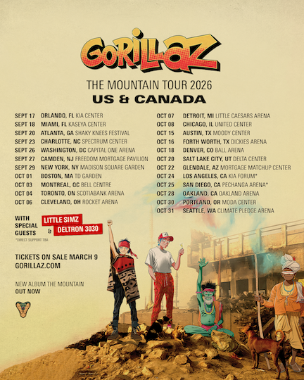 Following months of speculation and anticipation - as well as a pair of L.A. shows playing new album "The Mountain" in its entirety, and the U.S. opening of their "House of Kong" exhibition - Gorillaz have confirmed details of their first extensive North American tour since 2022.