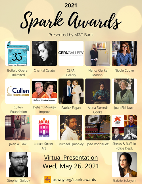 Arts Services Inc. will recognize 17 individual and organizational creative leaders in the Western New York arts industry at the eighth annual Spark Awards presented by M&T Bank on May 26.