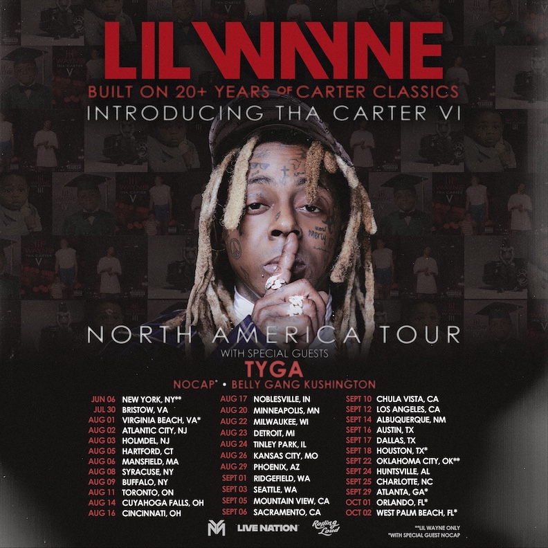 Today, five-time Grammy award-winning rap icon Lil Wayne announced his "Tha Carter VI" tour, a special North American run following the release of his highly anticipated album "Tha Carter VI," and celebrating over 20 years of his iconic "Tha Carter: album series.