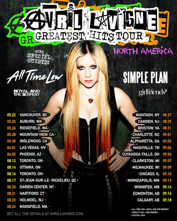 Eight-time Grammy-nominated Diamond-certified icon Avril Lavigne will bring her 2024 headline tour, "Avril Lavigne: The Greatest Hits" to the Darien Lake Amphitheater on Tuesday, Aug. 20.