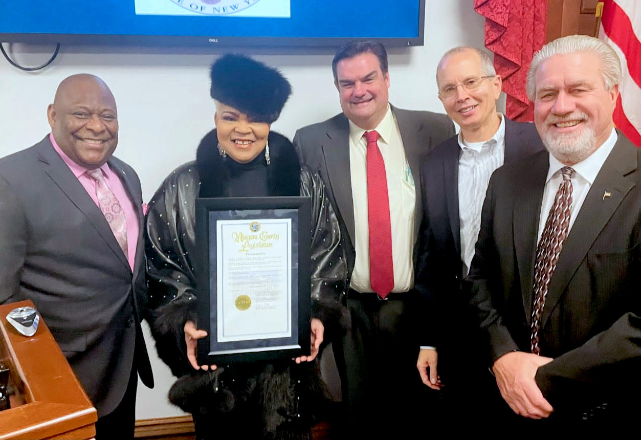 The Niagara County Legislature recognized local celebrity Marsha McWilson at a meeting earlier this week. She was lauded for her "outstanding contributions to the community."