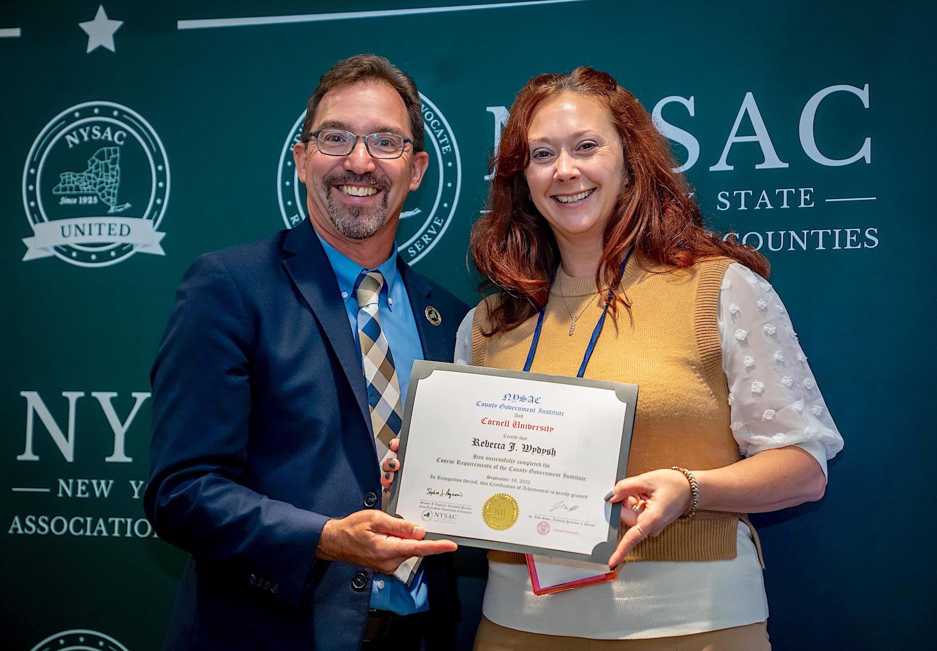 Niagara County Legislature Chairwoman Becky Wydysh and Legislator Rich Andres have graduated from the County Government Institute (CGI), a joint effort between the New York State Association of Counties and the Cornell University Community and Regional Development Institute.