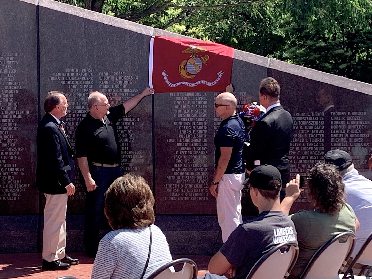 During a recent ceremony at the Buffalo and Erie County Naval & Military Park, Congressman Brian Higgins honored the service and sacrifice of Lance Cpl. Frederick Ziomek. He was joined by Tom Thompson, president of the Vietnam Veterans of America Chapter 77; and Paul Marzello, president and CEO of the Buffalo and Erie County Naval & Military Park. They marked the addition of Ziomek to the Western New York Vietnam Veterans Monument.