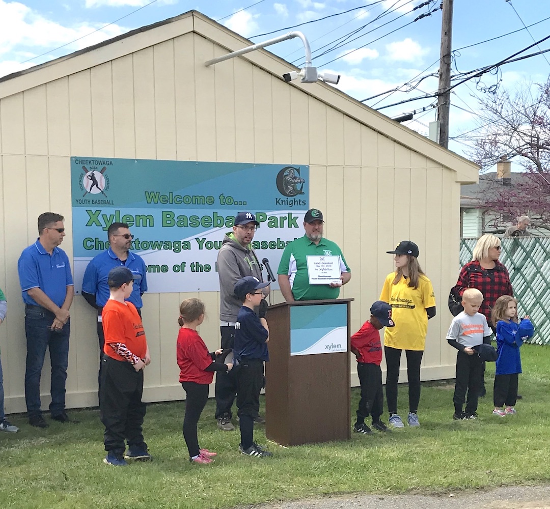 Xylem Inc., a global water technology company dedicated to solving the world's most challenging water issues, celebrated the Cheektowaga Youth Baseball Inc.'s opening day by donating five acres of land from its Cheektowaga location to the nonprofit. Xylem Watermark, the company's corporate citizenship and social investment program, helped enable the donation and support the day's events, which included water awareness education and activities focused on solving water challenges and promoting sustainability.