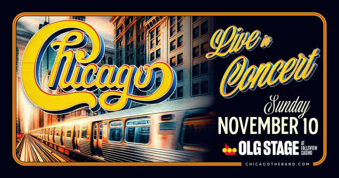 Mark your calendars! Rock 'n' roll icons Chicago will play live at the OLG Stage at Fallsview Casino on Sunday, Nov. 10 (7 p.m.). Tickets go on sale at 10 a.m. Friday, Aug. 9, through ticketmaster.ca.