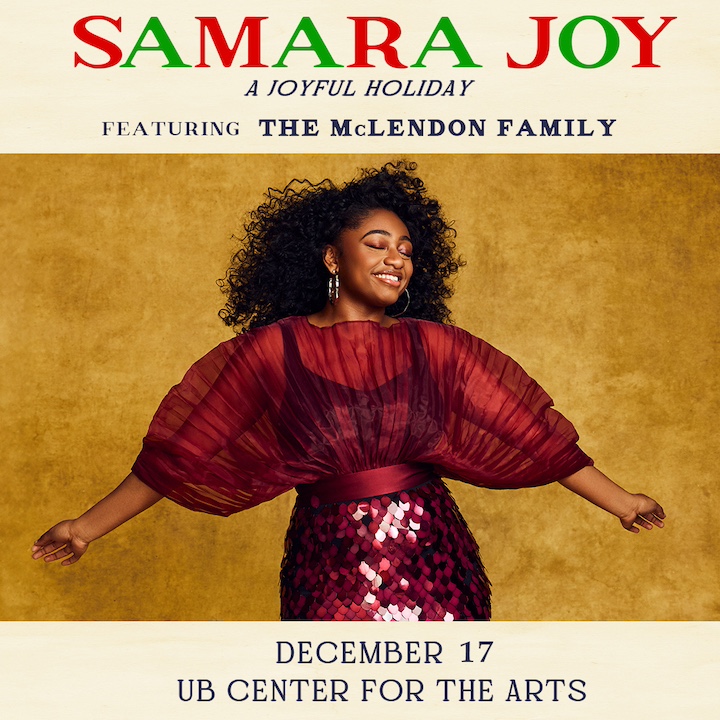 The University at Buffalo Center for the Arts (UBCFA) will present jazz vocalist sensation, Samara Joy, in a concert celebrating the season, in "A Joyful Holiday" featuring Joy and the McLendon Family on Dec. 17 (7:30 p.m.). Tickets for this not-to-be-missed show go on sale at noon July 26 at ubcfa.org, Ticketmaster, or in person at the UBCFA ticket office.