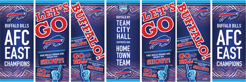 Mayor Byron Brown announced the seven City Hall banners celebrating the Buffalo Bills 2021 AFC East championship will be taken down Thursday, Jan. 27.