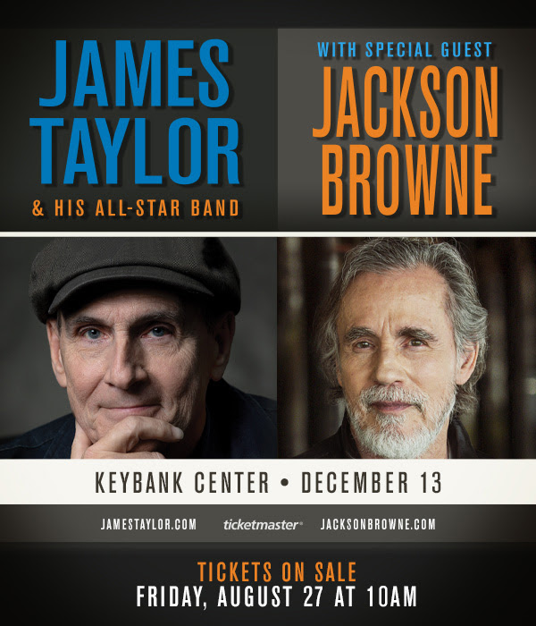 Legendary singer/songwriter James Taylor & His All-Star Band with special guest Rock and Roll Hall of Famer Jackson Browne and his band are coming to KeyBank Center on Dec. 13 for one intimate and memorable night.