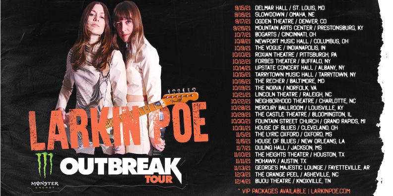 Larkin Poe, the Grammy Award-nominated sister duo comprised of Atlanta-bred, Nashville-based multi-instrumentalists Rebecca and Megan Lovell, are hitting the road with the Monster Energy Outbreak Tour. Kicking off Sept. 15, "The Monster Energy Outbreak Tour" featuring Larkin Poe will see the band hitting major cities across the U.S. This show hits the Forbes Theatre in Buffalo on Tuesday, Oct. 12.