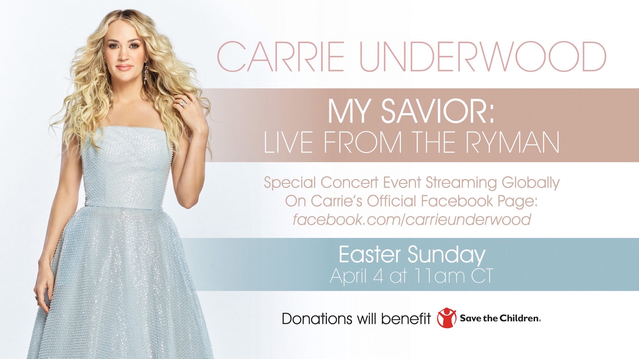 Seven-time Grammy Award-winner and three-time ACM Entertainer of the Year Carrie Underwood will bring her new album, "My Savior," to life with "My Savior: Live From The Ryman," a virtual live concert performance from the iconic, Ryman Auditorium in Nashville (also known around the world as the "Mother Church of Country Music.")