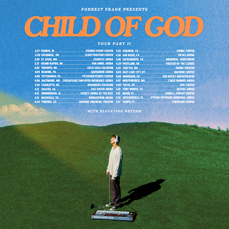 Grammy-nominee and double Dove Award-winning artist Forrest Frank has announced his 2025 "Child Of God Tour Part 2." Featuring Elevation Rhythm in support, following the massive success of his 2024 stretch, the tour will kick off March 27 and hit 26 markets across the U.S. and Canada.
