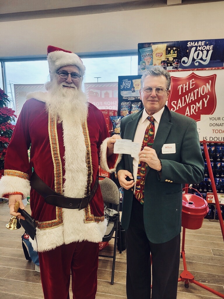 DiMino's Lewiston Tops recently presented a donation in the amount of $10,000 to the Salvation Army. Owner Anthony DiMino, pictured here with Santa, said Walmart will double that donation.